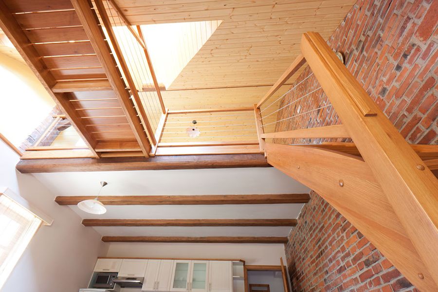 Apartmán č. 3Dvoupatrový apartmán spojený lomeným schodištěm. 1. patro je částečně otevřené a tím se opticky celý prostor zvětšil . Zajímavostí je pak lávka spojující pokoj s manželskou postelí s vikýřovým oknem. Apartmán disponuje další samostatnou ložnicí s manželskou postelí . Obě postele se dají oddělit . Koupelna s vanou a sprchovým koutem, pračkou . 2850 Kč / noc